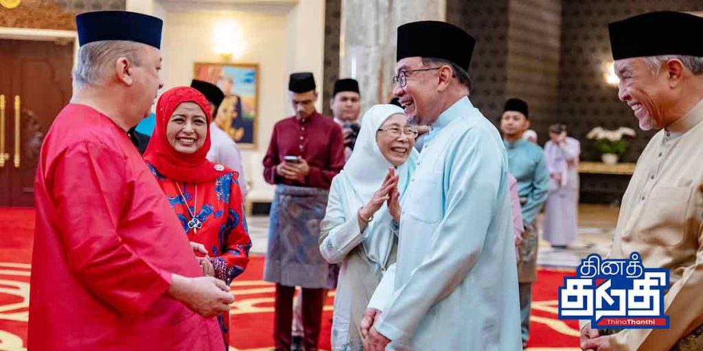 இஸ்தானா நெகாராவில் நேற்று நடைபெற்ற நோன்புப் பெருநாள் உபசரிப்பில் மாட்சிமை தங்கிய மாமன்னர் சுல்தான் இப்ராஹிம், பேரரசியார் ராஜா சாரித் சோபியா கலந்து சிறப்பித்தனர்.