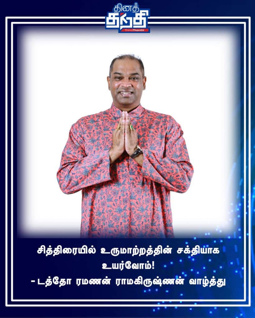 பிறந்திருக்கும் குரோதி வருட சித்திரைப் புத்தாண்டு நம் எண்ணங்களுக்கு வலிமை சேர்த்து, உருமாற்றத்திற்கு வழிகோலட்டும் என குறிப்பிட்ட டத்தோ ரமணன் ராமகிருஷ்ணன், சித்திரைப் புத்தாண்டு கொண்டாடுகின்ற அனைத்து இந்து மக்களுக்கும் நல்வாழ்த்துகளை தெரிவித்துக் கொண்டார்.