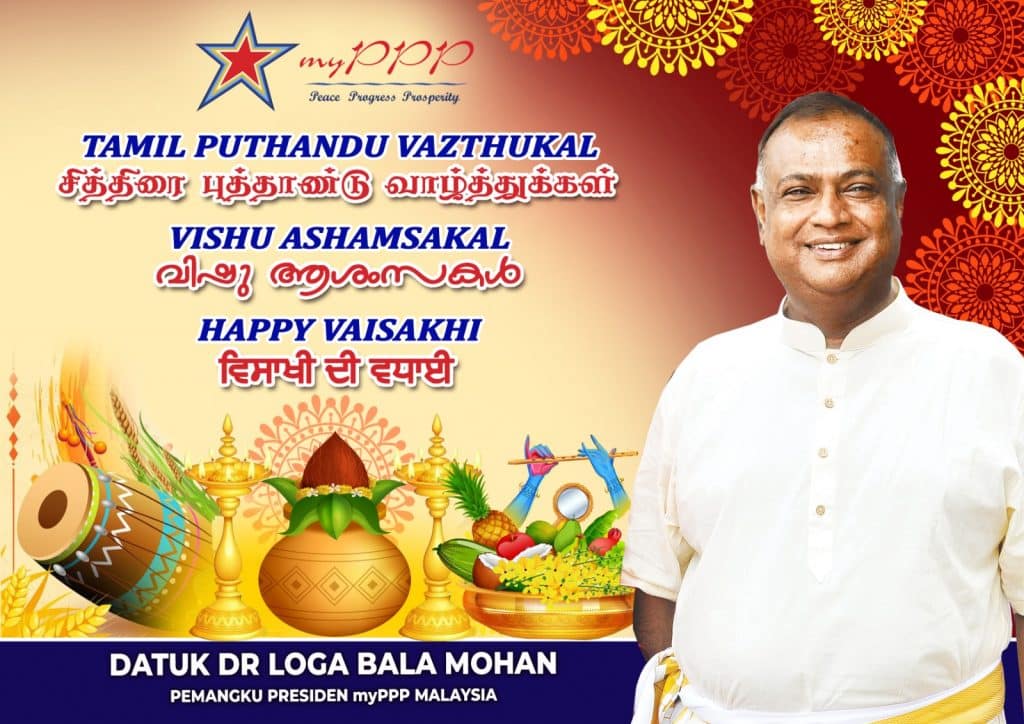 கோலாலம்பூர், ஏப்ரல் 13: சித்திரை புத்தாண்டு, வைசாகி விஷு பண்டிகையைக் கொண்டாடி மகிழும் தமிழர், சீக்கியர் மற்றும் மலையாளி சமூகத்தினருக்கு மைபிபிபி கட்சியின் இடைக்கால தேசிய தலைவர் டத்தோ டாக்டர் லோகபாலா தமது வாழ்த்துகளைத் தெரிவித்துக் கொண்டுள்ளார்