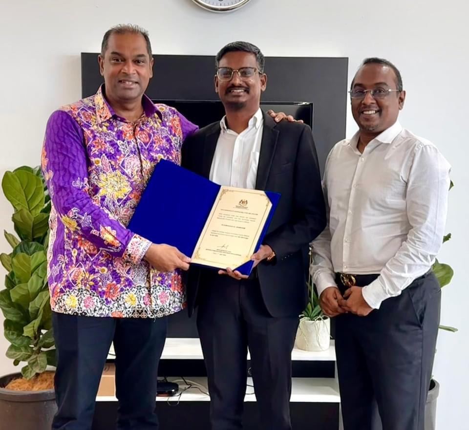 தொழில் முனைவோர் கூட்டுறவு மேம்பட்டு துறை அமைச்சர் டத்தோ எவோன் பெனடிக் சார்பில் அதன் துணை அமைச்சர் டத்தோ இரமணன் நியமனக் கடிதத்தை குமரேசனிடம் வழங்கினார்.