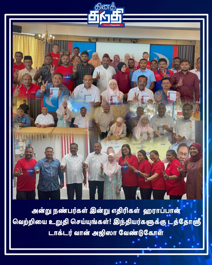 ஆகவே யார் எதைச் சொன்னாலும் அதை எல்லாம் பொருட்படுத்தாமல் பக்கத்தான் ஹராப்பான் வேட்பாளரை வெற்றி பெற செய்யுங்கள் என்று டத்தோஸ்ரீ டாக்டர் வான் அஜிஸா கேட்டுக் கொண்டார்.
