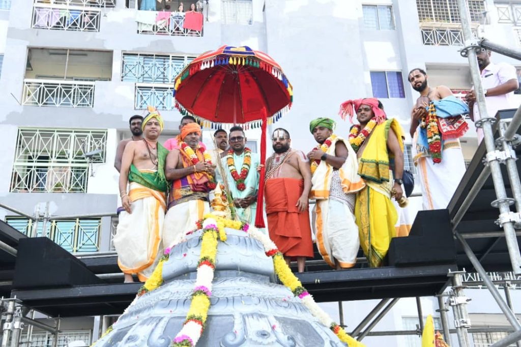 கடந்த வெள்ளிக்கிழமை தொடங்கி மூன்று நாட்களாக கும்பாபிஷேகத்திற்கு சிறப்பு பூஜைகளும் யாகங்களும் நடைபெற்றது. இன்று அதிகாலை யாகங்களும் பூஜைகளுக்கும் பிறகு காலை 8.42 மணிக்கு ஆலய கலசங்களுக்கு கும்ப நீர் ஊற்றப்பட்டது.