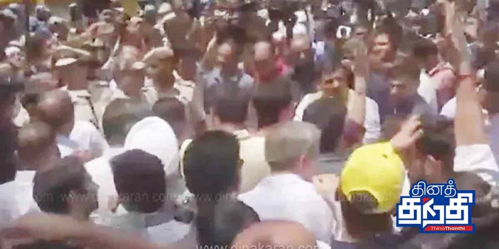 ஆம் ஆத்மி அலுவலகத்திலிருந்து ஊர்வலமாக புறப்பட்டவர்களை போலீசார் தடுத்து நிறுத்த முயற்சி செய்து வருகின்றனர்.