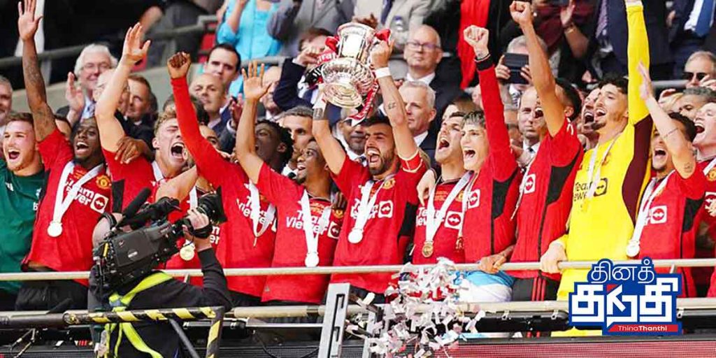பரபரப்பான எஃப்.ஏ. கிண்ணக் கால்பந்து போட்டி இறுதி ஆட்டத்தில் மென்செஸ்டர் யுனைடெட் 2-1 என்ற கோல் கணக்கில் பரம எதிரியான மென்செஸ்டர் சிட்டியை வீழ்த்தி கிண்ணத்தை வென்று வரலாறு படைத்தது.