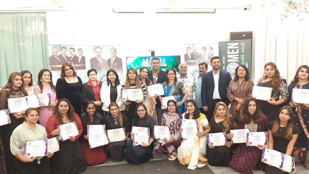 செராஸ் மலூரி திரி பிரவுன் போய்ஸ் மண்டபத்தில் நடைபெற்ற சான்றிதழ் வழங்கும் விழாவுக்கு ம இகா தேசிய மகளிர் அணி தலைவி மாண்புமிகு சரஸ்வதி நல்லத்தம்பி தலைமை தாங்கினார்.