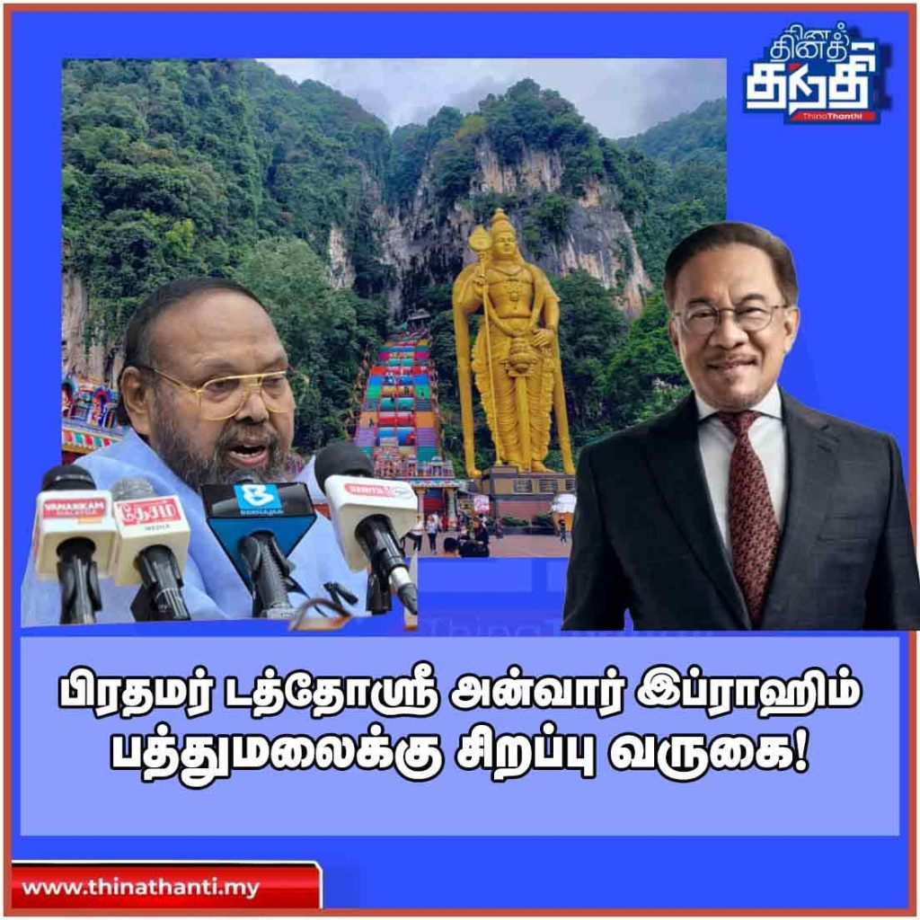 பிரதமர் டத்தோஸ்ரீ அன்வார் இப்ராஹிம் பத்துமலை திருத்தலத்திற்கு வருவாரா எனும் கேள்வி இந்தியர்கள் மத்தியில் எழுந்து நிலையில் பக்தர்களின் எதிர்பார்ப்பை பிரதமர் டத்தோஸ்ரீ அன்வார் இப்ராஹிம் அவர்கள் நாளை பூர்த்தி செய்யவுள்ளார்.