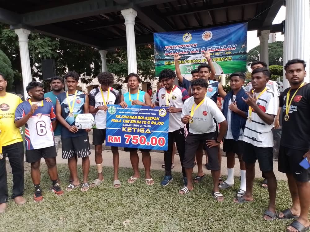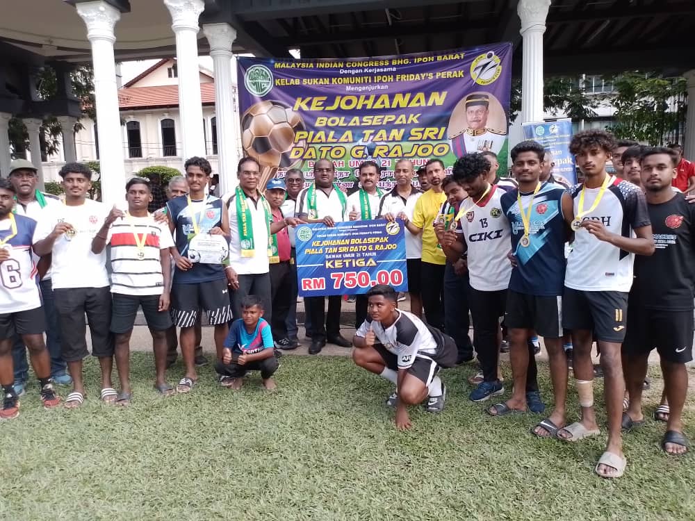 [மூன்றாவது நான்காவது இடங்களை சூரியா கால்பந்துக் குழு மற்றும் வசந்தன் பிரதர்ஸ் குழு வாகை சூடி தலா 750 ரிங்கிட் பரிசு தொகையை வென்றது.
