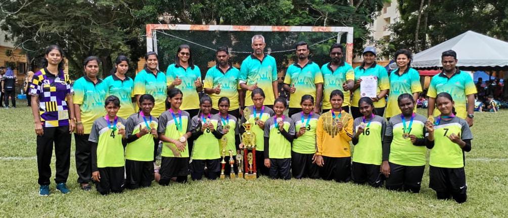 மாணவி தபாஸ்வினி சிறந்த விளையாட்டளர் விருது மற்றும் மாணவி தனுஷா சிறந்த கோல் காவலர் விருது வழங்கி சிறப்பித்தது வெற்றியின் மணிமகுடமாக அமைந்தது.