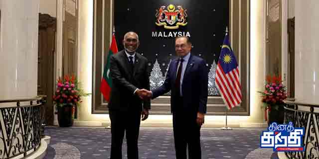 நேற்று மலேசியாவிற்கு நான்கு நாள் அரசு முறை பயணமாக வந்த அதிபர் முய்சுவுக்கு, பெர்டானா புத்ராவில் பிரதமர் அன்வார் இப்ராஹிம் தலைமையில் அதிகாரப்பூர்வ வரவேற்பு அளிக்கப்பட்டது. வரவேற்புக்குப் பின்னர், இரு தலைவர்களும் இருதரப்பு பேச்சுவார்த்தையில் ஈடுபட்டனர்.