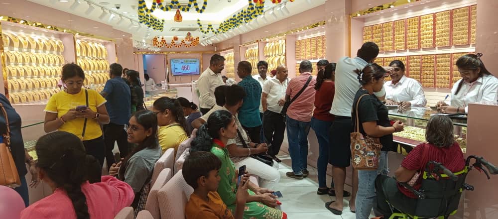 இன்று அட்சயத் திருதியை முன்னிட்டு மஸ்ஜித் இந்தியாவில் உள்ள கன்னிகா தங்க மாளிகையில் நகைகள் வாங்க மக்கள் ஆர்வம் காட்டினார்.