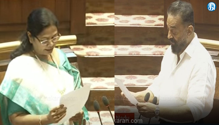 இந்நிலையில், இந்த 6 எம்.பி.க்களும் இன்று நாடாளுமன்றத்தில் பதவியேற்பு விழா நடைபெற்றது. இதில், திமுக சார்பில் மக்கள் நீதி மய்யம் கட்சியின் தலைவர் கமல்ஹாசன் மாநிலங்களவை எம்.பி.யாக தமிழில் உறுதி ஏற்று பதவி ஏற்றுக் கொண்டார். இதேபோல, திமுக சார்பில் வில்சன், சிவலிங்கம், கவிஞர் சல்மா மற்றும் அதிமுக சார்பில் இன்பதுரை, தனபால் ஆகியோரும் தமிழில் உறுதி ஏற்று பதவி ஏற்றுக் கொண்டனர்.