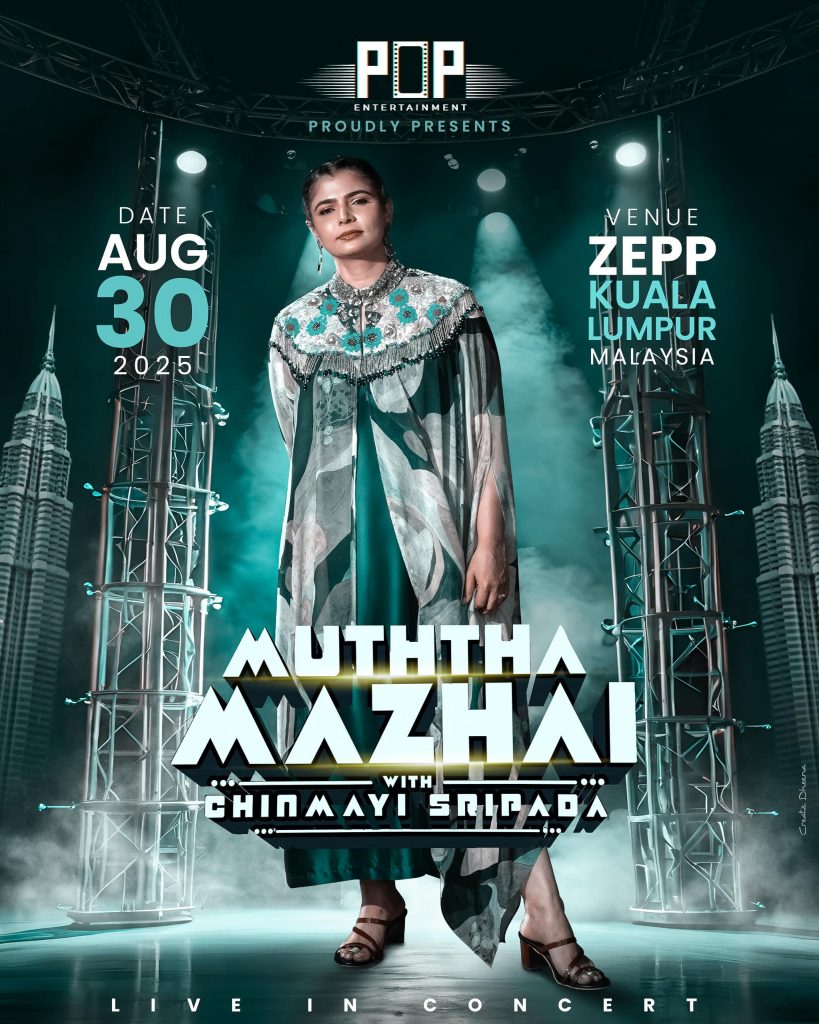 POP எண்டர்டெயின்மென்ட் ஏற்பாட்டில் பிரபல திரைப்பட பாடகி சின்மயி ஸ்ரீபாதா தலைமையில் முத்த மழை எனும் இசை நிகழ்ச்சி இம்மாதம் ஆகஸ்ட் 30ஆம் தேதி கோலாலம்பூரில் உள்ள Zepp அரங்கத்தில் நடைபெறவுள்ளது.