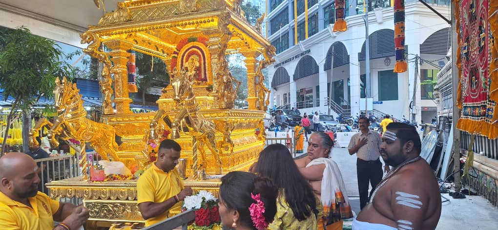 நேற்று இரவு 7.00 மணிக்கு தங்கரத ஊர்வலத்தை ஸ்ரீ மகா மாரியம்மன் கோவில் தேவஸ்தானத்தின் தலைவர் டான்ஸ்ரீ டாக்டர் ஆர் நடராஜா அதிகாரப்பூர்வமாக தொடக்கி வைத்தார்.