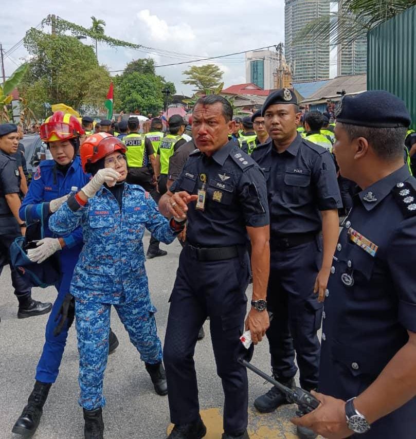கம்போங் சுங்கை பாருவில் நடந்த சலசலப்பில் டாங் வாங்கி மாவட்ட போலலீஸ் தலைவர் சுசில்மி அஃபெண்டி சுலைமான் காயமடைந்தார்.
