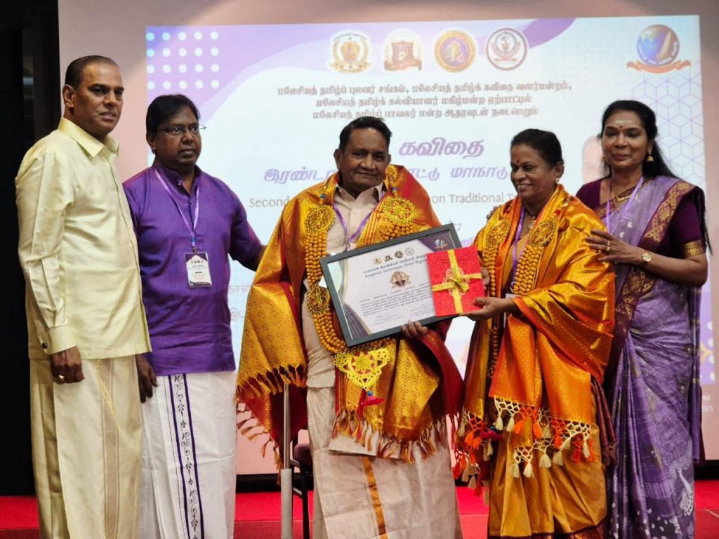 கோலாலம்பூர்,செப்13: பன்னாட்டு மரபுகவிதை மாநாட்டில் புலவர் சங்கத்தின் மேனாள் தலைவர் பாவலர் தமிழ்த்திரு முகிலரசனும் அவரது இணையரும் பேரா மாநிலத் தமிழ் எழுத்தாளர் சங்கத்தின் மேனாள் பொருளாளருமான டாக்டர் திலகவதியும் சிறப்பிக்கப்பட்டனர்.