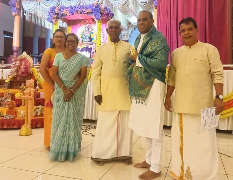 கோலாலம்பூர் நவசக்தி கலை கலாசார இயக்கத்தின் தலைவர் ஜி.சேகர் பரிவட்டம் கட்டி கெளரவித்தார்.