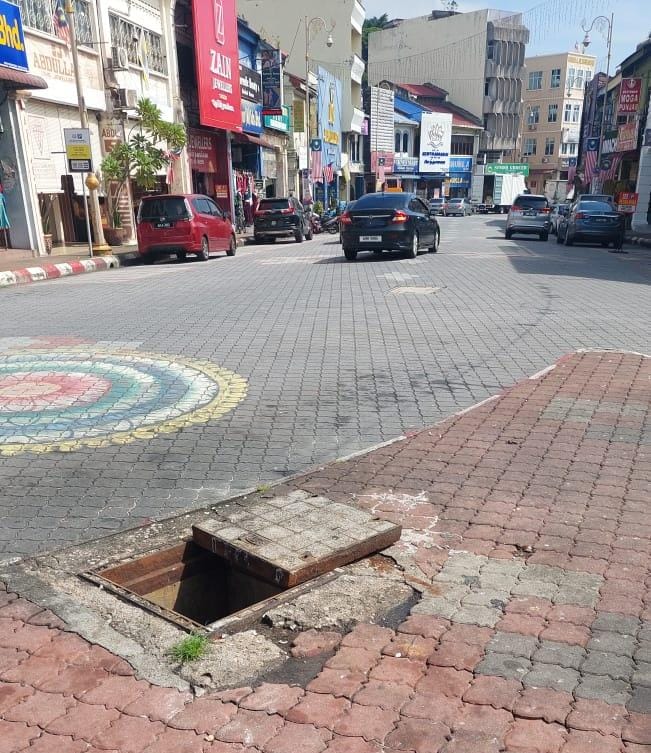 இங்குள்ள ஈப்போ லிட்டல் இந்தியா வளாகத்தின் முதன்மை சாலையில் சாக்கடைகள் மூடப்பட்டிருந்த சிமெண்ட் மூடிகள் திறந்து கிடந்தன.