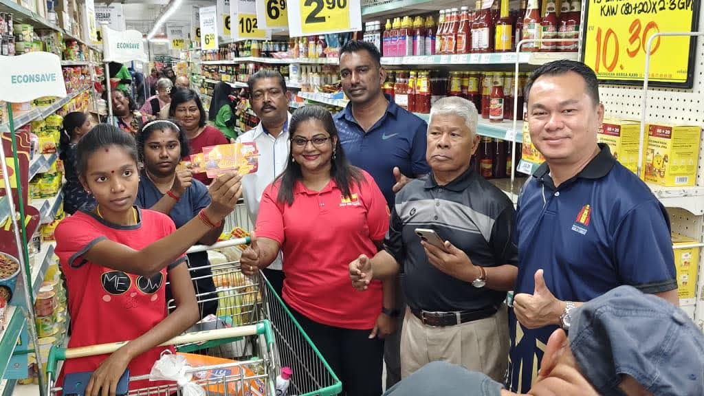 தொகுதி சேவை மைய பொறுப்பாளர்களிடம் பற்றுச் சீட்டுகளைப் பெற்றுக் கொண்டவர்கள் பேரங்காடியில் தீபாவளிக்குத் தேவையான அத்தியாவசியப் பொருள்களை வாங்கிக் கொண்டனர்.