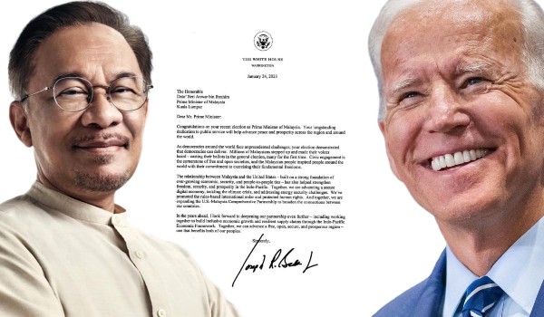 தொழில், வர்த்தகம் உட்பட பல துறைகளில் மலேசியாவுக்கு இணைந்து அமெரிக்கா ஒத்துழைக்கும் என்று டத்தோஸ்ரீ அன்வார் இப்ராகிமிற்கு அனுப்பிய வாழ்த்துச் செய்தியில் ஜோ பிடான் தெரிவித்துள்ளார்.