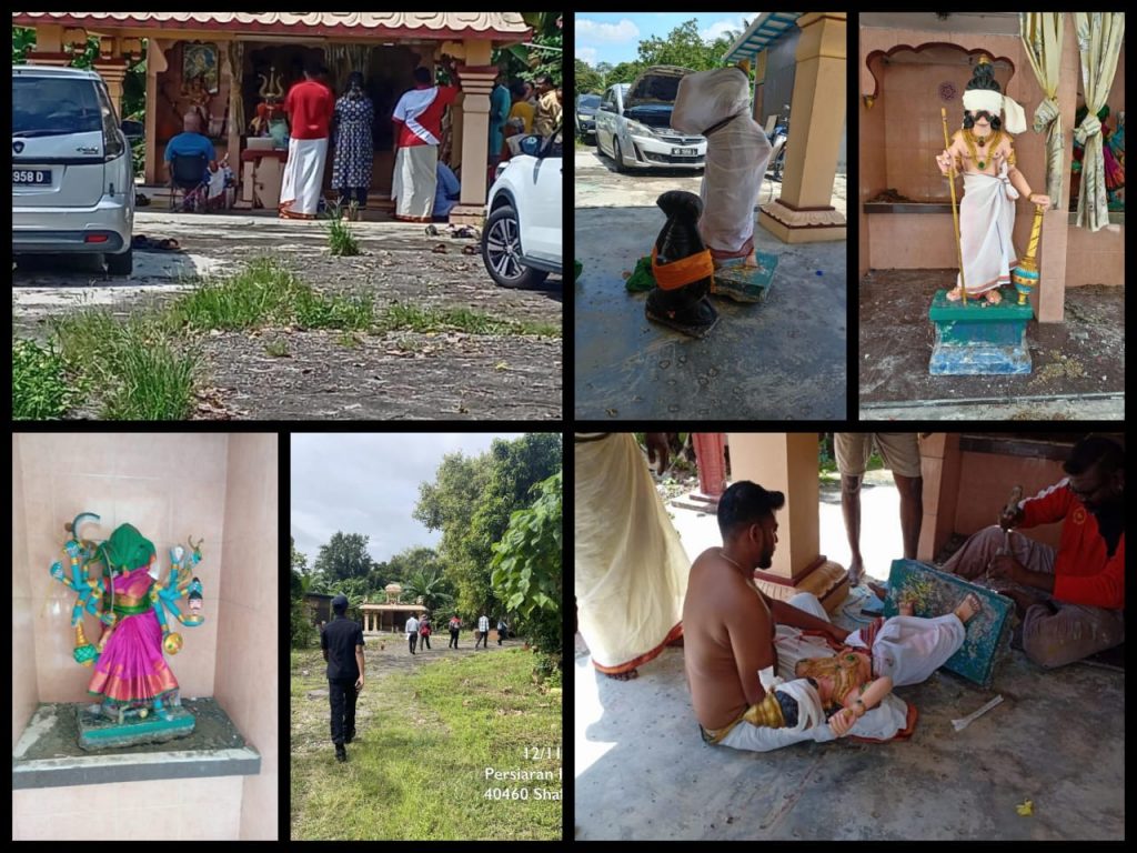 இன்று டிக் டோக்கில் வைரல் ஆகிவரும் புக்கிட் கெமுனிங் அருள்மிகு முனீஸ்வரர் ஆலயத்தில் உள்ள அனைத்து தெய்வ வழிப்பாட்டு சிலைகளும் முறையாக அகம விதிக்கு உட்பட்டு அனைத்தும் இடம் மாற்றம் செய்து விட்டதாகவும் உடைந்த நிலையில் இருக்கும் அச்சிலையானது கோபுரத்தில் அமைக்கப்பட்டிருந்த ஒரே ஒரு சிலை என்பதுடன் அச்சிலை அகற்ற முடியாத சூழ்நிலையில் அங்கே இருக்கமான கம்பிகளை கொண்டு பிணைக்கப்பட்டிருந்ததால் அச்சிலையை மட்டும் ஆலய நிர்வாகம் அகற்றாமல் விட்டு விட்டதாகவும் தெரிவித்தனர்.