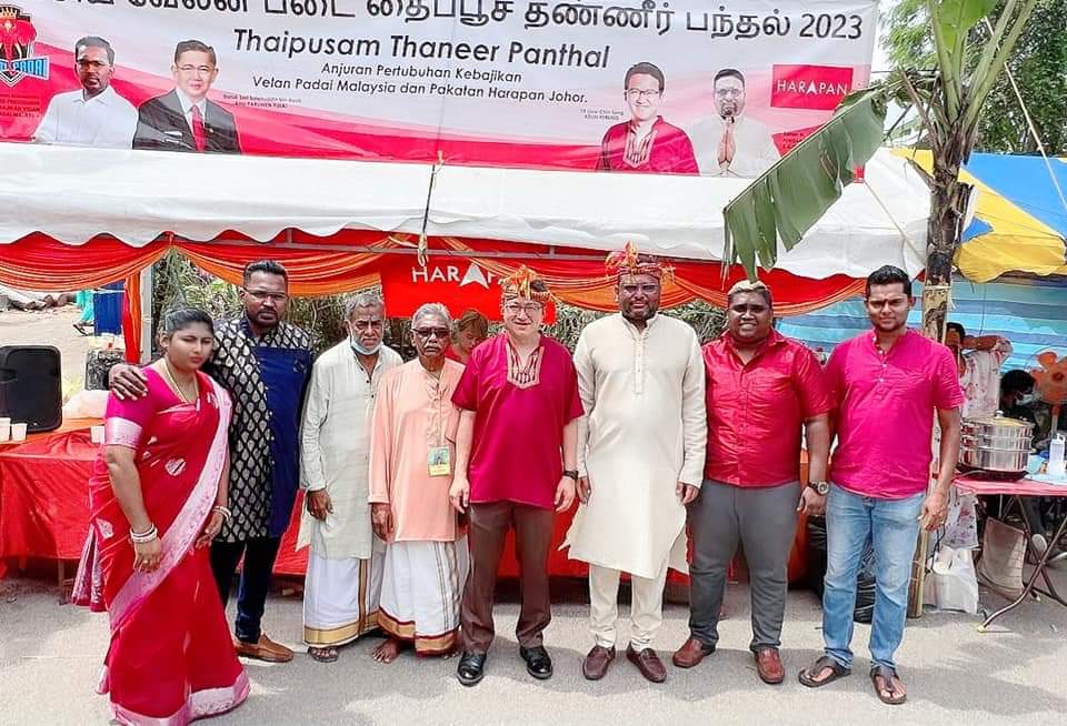 தம்போய் ஜோகூர் ஓம் ஸ்ரீ முனீஸ்வரர் கோவிலில் நடைபெற்ற தப்பூசத்தை முன்னிட்டு மலேசிய தமிழர் வேலன் படைத் தலைவர் சுரேந்திரன் பலராமன் தலைமையில் தண்ணீர் பந்தல் அமைக்கப் பட்டது.