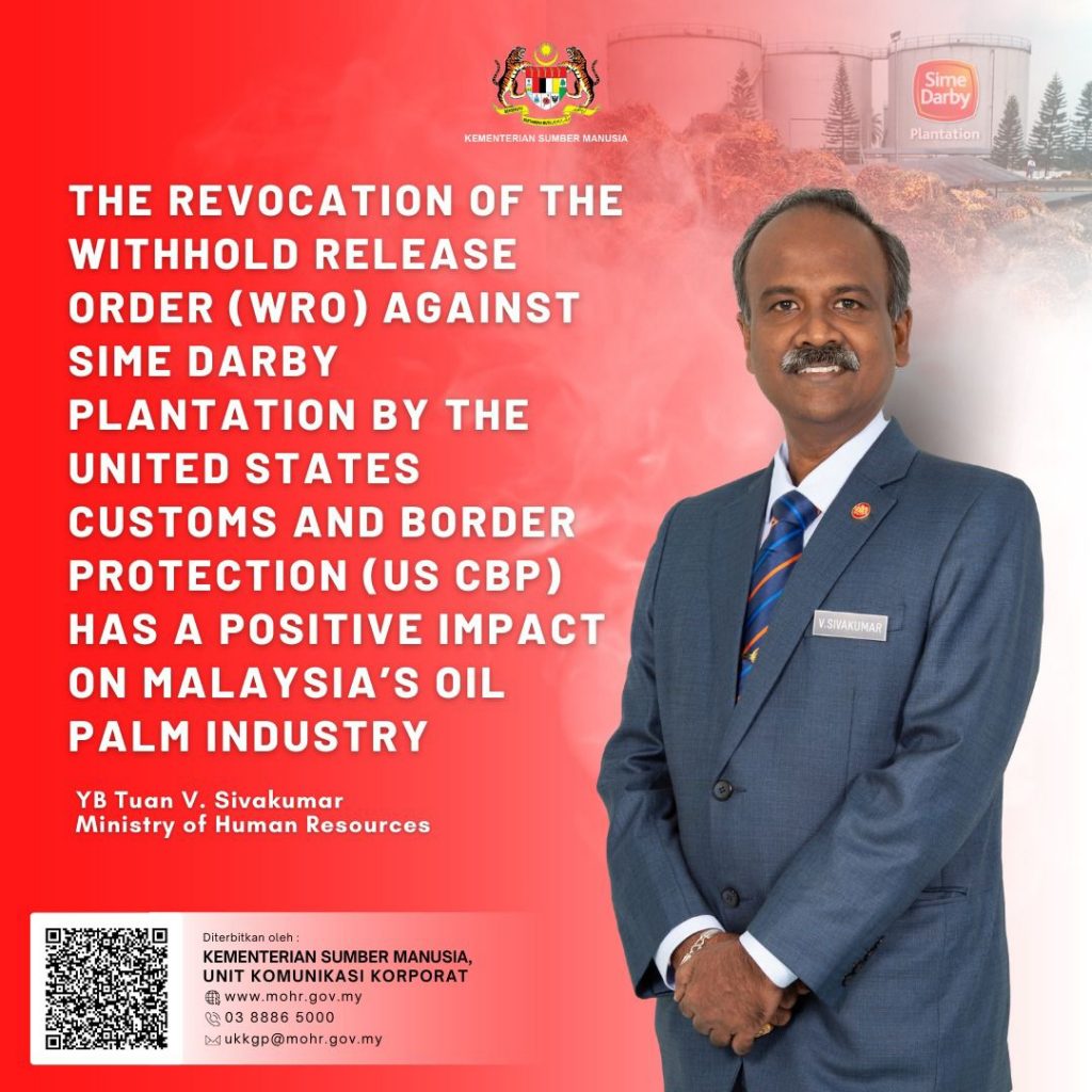 சைம் டர்பியின் செம்பனை பொருட்கள் இறக்குமதி தடை அகற்றப்பட்டது ஒரு மகிழ்ச்சியான செய்தி என்று மனித வள அமைச்சர் வ. சிவகுமார் தெரிவித்தார்.