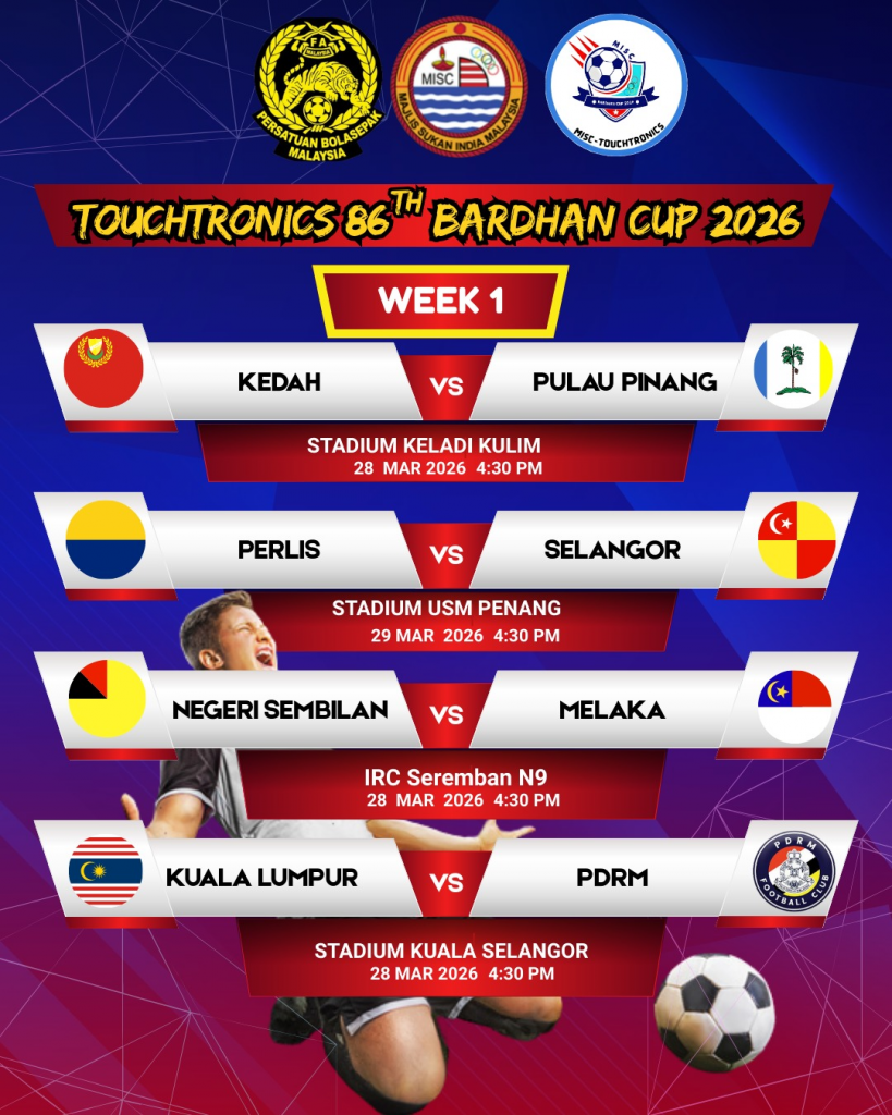 மலேசிய இந்தியர் விளையாட்டு பேரவை ஏற்பாட்டில் 2026 ஆம் ஆண்டுக்கான பரதன் கிண்ண கால்பந்து போட்டி இன்று அதிகாரப்பூர்வமாக தொடங்குகிறது.