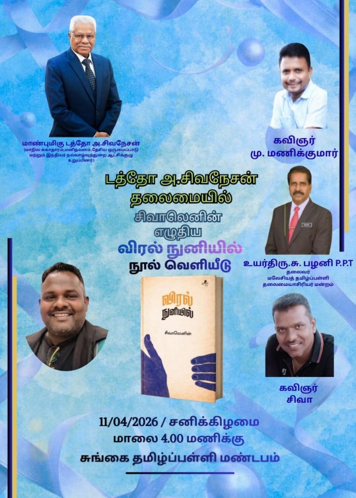 பேரா மாநிலத் தமிழ் எழுத்தாளர் சங்கத்தின் தலைவரும் நாடறிந்த எழுத்தாளருமான சிவாலெனின் எழுதிய விரல் நுனியில் கவிதைத் தொகுப்பு நூல் இன்று 11.04.2026இல் சனிக்கிழமை வெளியீடு காணவுள்ளது.