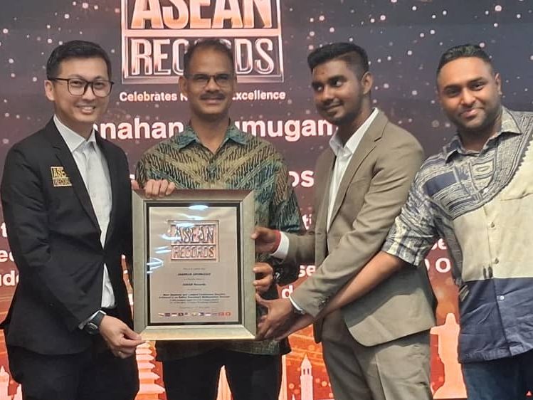 இந்த சாதனைக்காக அவருக்கு ஆசியான் சாதனையாளர் விருதை Asian Record’s நிறுவனத்தின் தலைமை இயக்குநர் Eldrick Koh வழங்கி சிறப்பித்தார்.