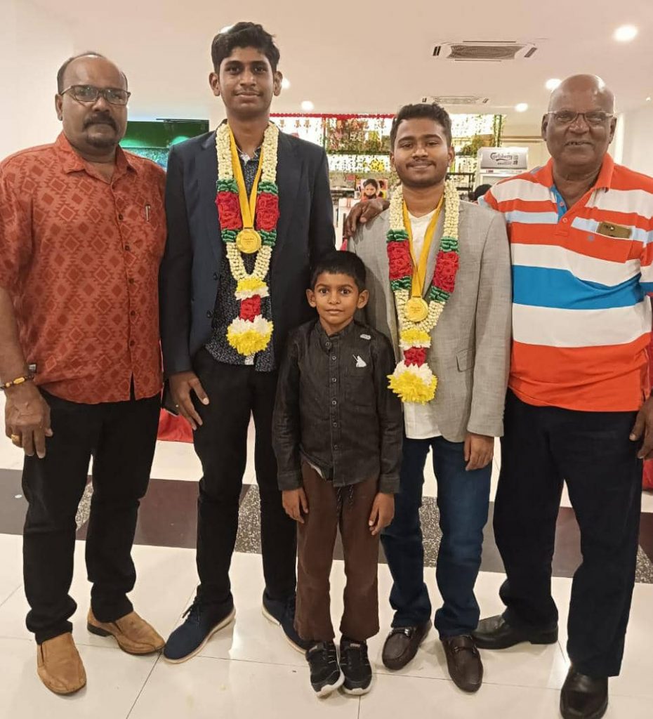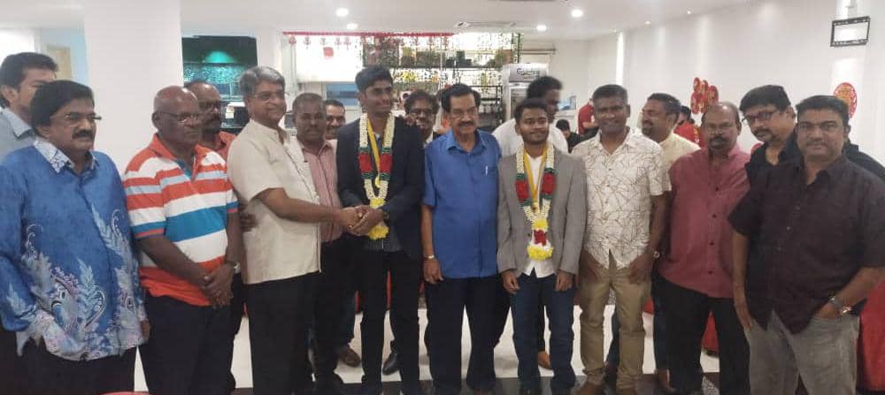 எஸ்பிஎம் தேர்வில் சிறப்பு தேர்ச்சி பெற்ற இரு மாணவர்களுக்கும் மாலைகள் அணிவித்து ரொக்க வெகுமதியும் வழங்கப்பட்டது.