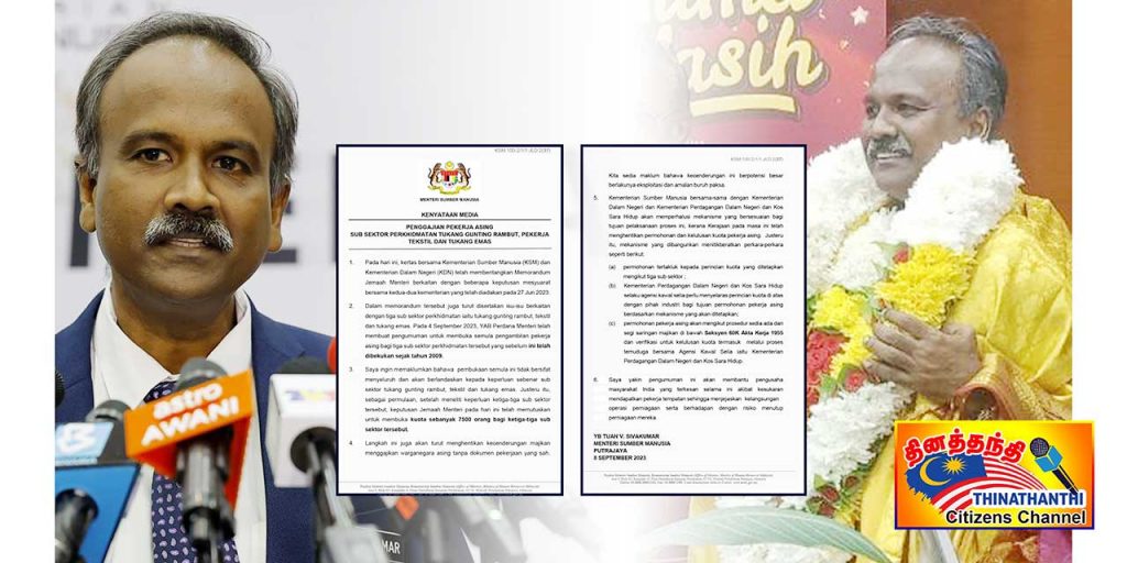 நாட்டில் உள்ள இந்திய பாரம்பரிய தொழில் துறைகளில் 7,500 அந்நிய தொழிலாளர்களை வேலைக்கு அமர்த்தி கொள்வதற்கு அமைச்சரவை இன்று ஒப்புதல் அளித்ததாக மனிதவள அமைச்சர் வ சிவகுமார் தெரிவித்தார்.