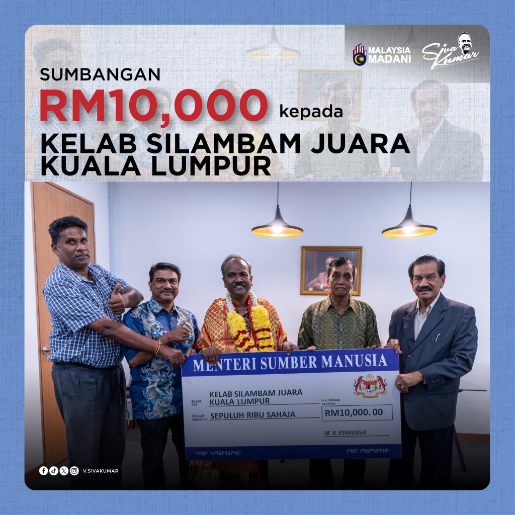 உழைத்த டாக்டர் பி.எஸ். பிள்ளை தலையிலான கோலாலம்பூர் ஜூவாரா சிலம்ப கிளப்புக்கு மனித வள அமைச்சர் வ. சிவகுமார் 10,000 வெள்ளியை வழங்கி பேருதவி புரிந்துள்ளார்.