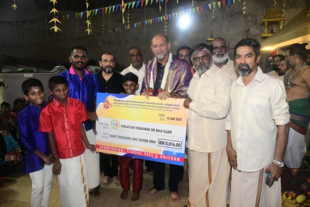 பத்துமலை, ஜன 16- பாலா இல்லம் சமூக நல இல்லத்தில் தங்கியிருக்கும் 40 இந்திய மாணவர்கள் பள்ளி சீருடைகள், காலணிகள் மற்றும் புத்தகப் பைகளை வாங்க பத்துமலை ஐயப்பன் கோவில் தேவஸ்தானம் நேற்று 8,016 வெள்ளியை வழங்கி பேருதவி புரிந்தது. தைப்பொங்கலை முன்னிட்டு ஐயப்பன் கோவில் திருத்தலத்தில் நேற்று மகரஜோதி திருவிழா மிகவும் விமரிசையாக நடைபெற்றது. டிஜிட்டல் துறை அமைச்சர் கோபிந்த் சிங் டியோ தலைமையில் நடைபெற்ற இந்த விழாவில் ஆயிரத்திற்கும் மேற்பட்ட ஐயப்பன் சுவாமி பக்தர்கள் மற்றும் பொதுமக்கள் கலந்து சிறப்பித்தனர். இந்த விழாவில் சிறப்பு அங்கமாக பாலா இல்லம் சமூக இல்லத்தை சேர்ந்த 40 மாணவர்களுக்கு உதவிகள் வழங்கப்பட்டன. பாலா இல்லம் சமூக நல இயக்கத்தின் பொறுப்பாளர்களிடம் 8,016 வெள்ளி காசோலையை அமைச்சர் கோபிந்த் சிங் டியோ, ஐயப்பன் கோவில் தேவஸ்தானத்தின் தலைவர் யுவராஜா ஆகியோர் நேரடியாக ஒப்படைத்தனர் என்பது குறிப்பிடத்தக்கது.